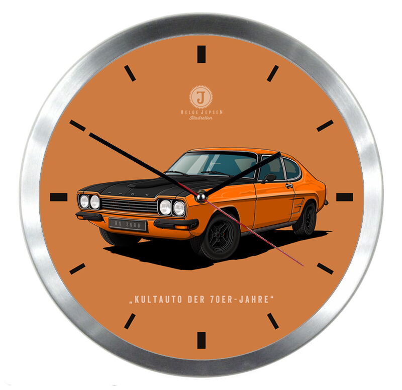 F4 Helge Jepsen Wanduhr mit Illustration eines Ford Capri