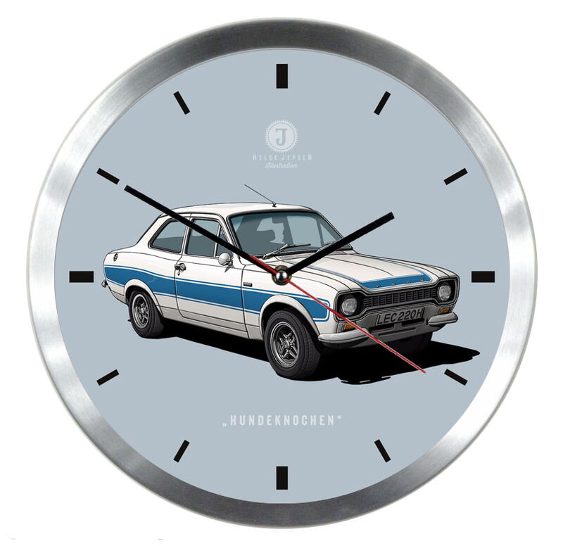 F5 Helge Jepsen Wanduhr mit Illustration eines Ford Escort